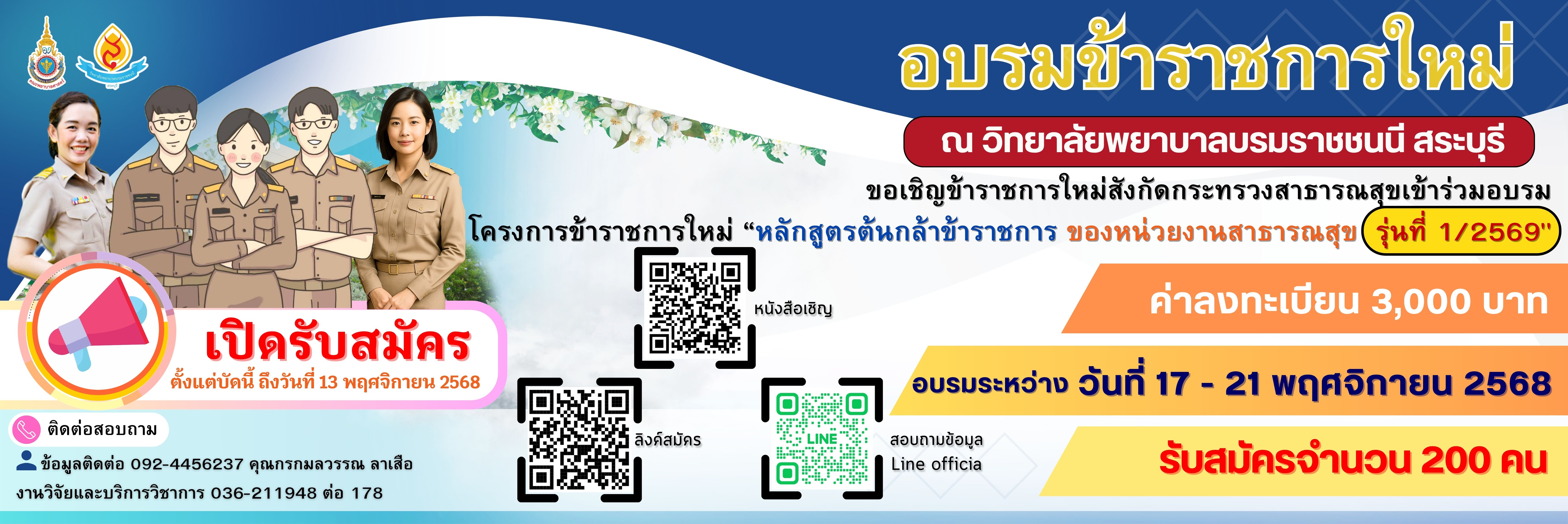 02 Nov 2025 วพบ.สระบุรี ร่วมโครงการแสงนำใจไทยทั้งชาติ เดิน วิ่ง ปั่น ป้องกันอัมพาต ครั้งที่ 11 เฉลิมพระเกียรติ อ่านเพิ่มเติม ดูทั้งหมด