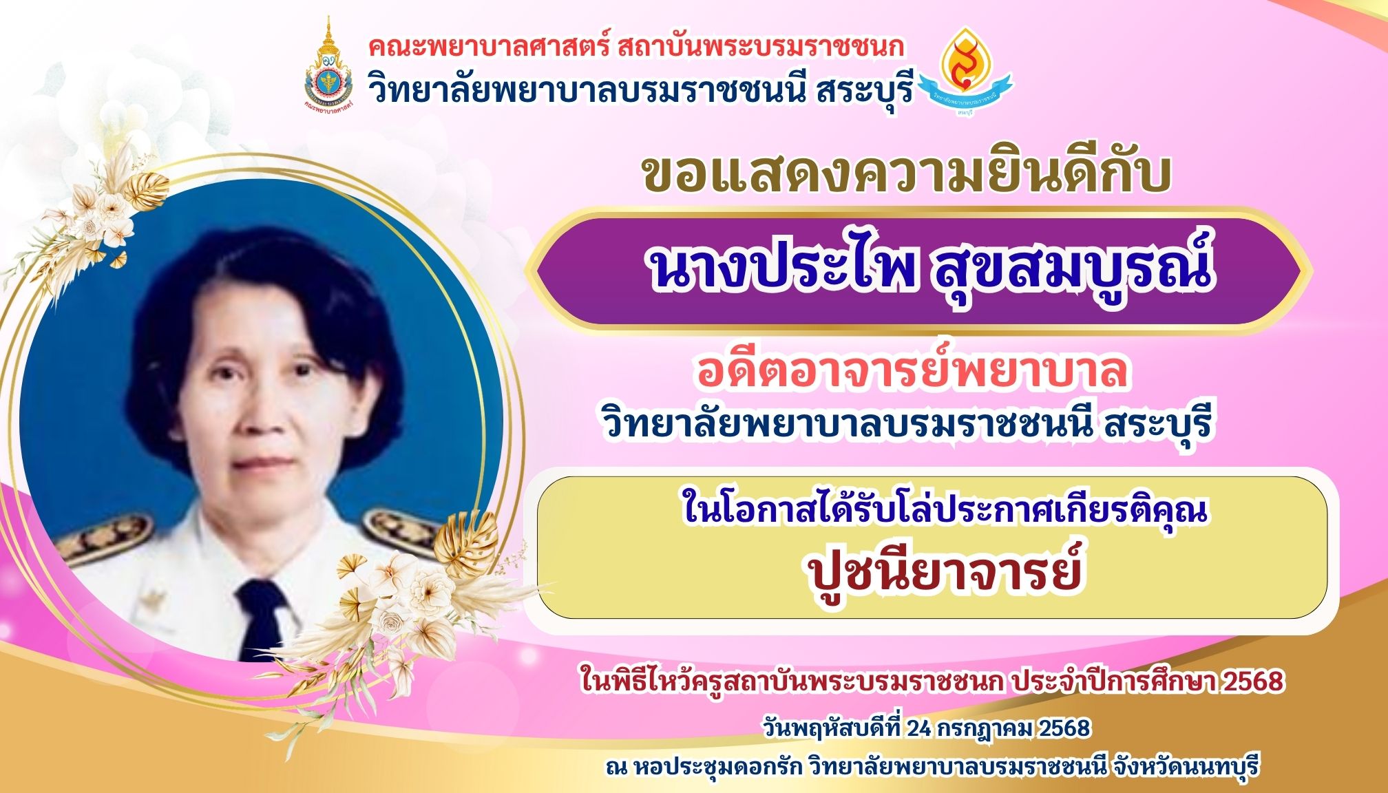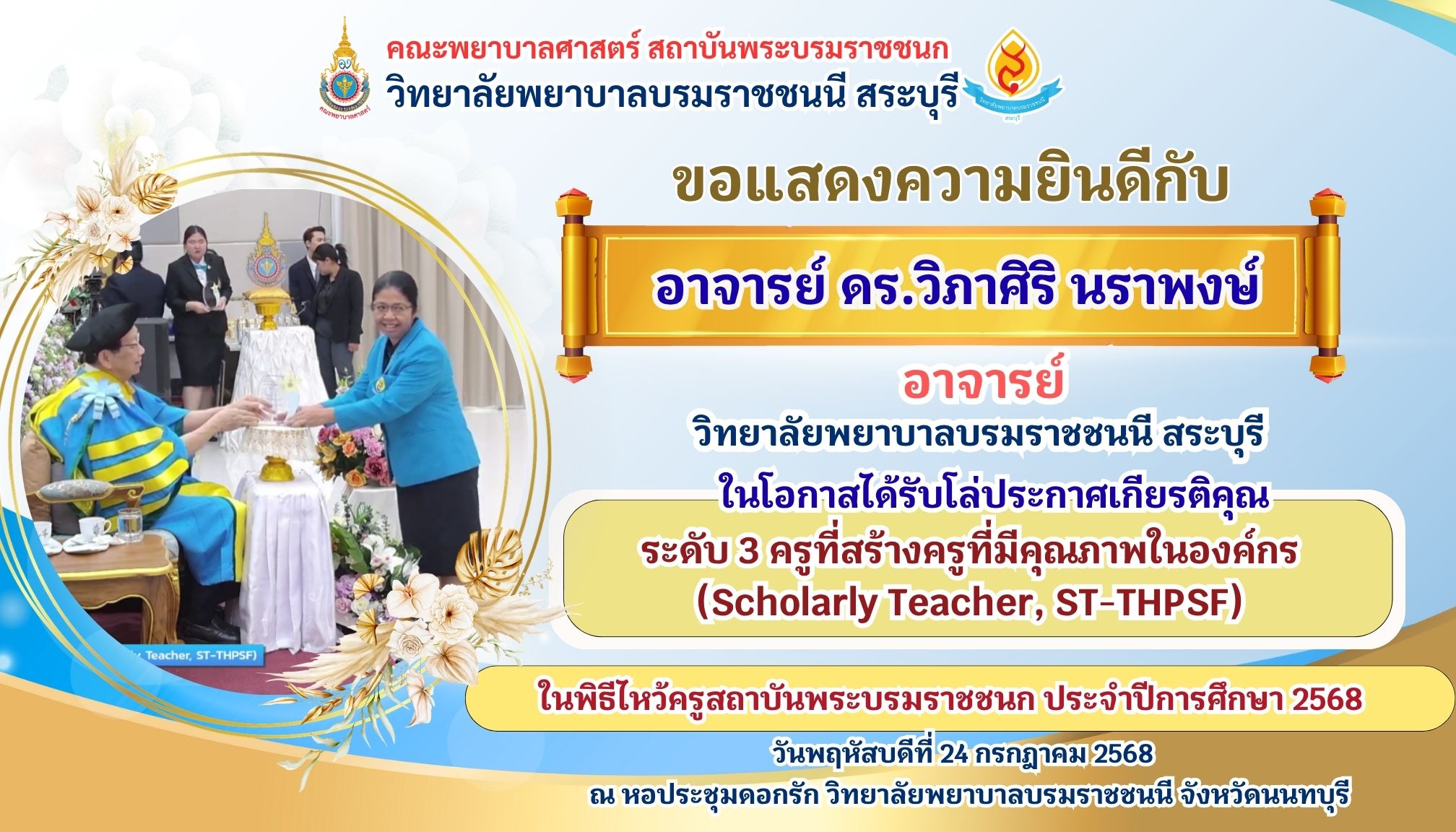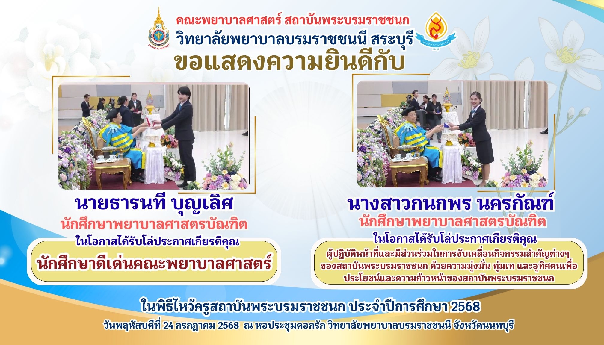แสดงความยินดี ผู้ได้รับโล่ประกาศเกียรติคุณ ประจำปีการศึกษา 2568 สถาบันพระบรมราชชนก